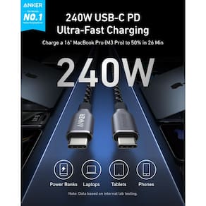 - O que você obtém: cabo Anker Prime USB-C para USB-C (3 pés, 240 W, trançado), organizador de cabos, guia de boas-vindas, garantia eterna e nosso amigável atendimento ao cliente.