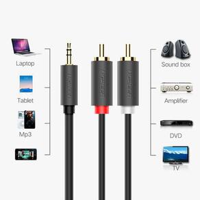 Cabo Áudio Ugreen P2 3.5mm Para 2 Rca Macho 1m Som Estéreo