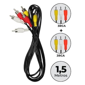 Especificações: - Conexão: Plugs RCA macho banhados - Cabo emborrachado de alta qualidade e resistente - Padrão de cores: segue todas as normas, sendo: Amarelo Imagem , vermelho e branco áudio estéreo - Comprimento: 1,5m - Cor: Preto