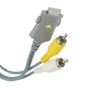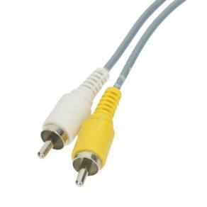 Cabo AV Samsung modelo TAD137ESE com conectores RCA amarelo e branco, utilizado para transmissão de áudio e vídeo de dispositivos compatíveis com conector proprietário da marca. Ideal para ligar câmeras e aparelhos antigos da Samsung em TVs ou monitores com entrada RCA. Especificações Técnicas: