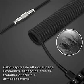 Design enrolado aviador para um toque premium no setup Material trançado de alta durabilidade Conectividade USB-C para USB com excelente desempenho Compatível com teclados mecânicos USB-C Comprimento de 3 metros para mais flexibilidade
