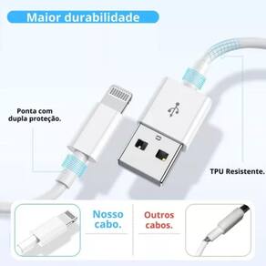 O cabo usb 4.8a max de 1 metro conecta o seu celular i0s com conector lightning à porta usb do seu computador. Com ele você sincroniza o dispositivo e carrega a bateria. Você também pode conectá-lo o cabo a um carregador usb para plugar na tomada.