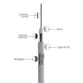 Cabo Coaxial Rg6 - 1 Metro Cabo Coaxial RG6 é ideal para instalação de antenas, CFTV, Parabólicas e sistemas de TV a cabo em geral. Possui malha de 95% e isolamento Interno de polietileno PVC 70C Anti Chama. Fita de poliéster aluminizada mais uma malha de fios de alumínio ou cobre estanhado 95%. Indicado para instalações de antenas VHF/UHF/Digital, parabólicas e sistemas DTH.