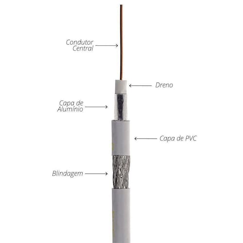 Cabo Coaxial Rg6 - 2 Metros Cabo Coaxial RG6 é ideal para instalação de antenas, CFTV, Parabólicas e sistemas de TV a cabo em geral. Possui malha de 95% e isolamento Interno de polietileno PVC 70C Anti Chama. Fita de poliéster aluminizada mais uma malha de fios de alumínio ou cobre estanhado 95%. Indicado para instalações de antenas VHF/UHF/Digital, parabólicas e sistemas DTH.