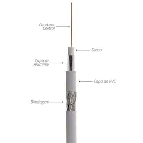 Cabo Coaxial Rg6 - 3 Metros Cabo Coaxial RG6 é ideal para instalação de antenas, CFTV, Parabólicas e sistemas de TV a cabo em geral. Possui malha de 95% e isolamento Interno de polietileno PVC 70C Anti Chama. Fita de poliéster aluminizada mais uma malha de fios de alumínio ou cobre estanhado 95%. Indicado para instalações de antenas VHF/UHF/Digital, parabólicas e sistemas DTH.
