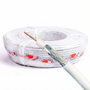 Cabo Coaxial RGC6 75 OHMS 95% Branco Rolo 100 Metros de malha para alta performance em sistemas de áudio, vídeo e telecomunicação.