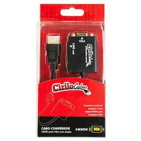 Cabo Conversor Hdmi Para Vga Com Áudio - Cirilo Cabos Converta com facilidade o sinal HDMI para VGA utilizando esse Adaptador Conversor HDMI para VGA com Áudio p2 e USB da Cirilo Cabos. Ele suporta resolução em Full HD 1080p e é a solução ideal para conectar aparelhos com conexão digital HDMI a ambientes corporativos, salas de reunião, centros de treinamento ou locais que tenham apenas a conexão VGA. O Adaptador HDMI para VGA foi desenvolvido com a melhor tecnologia da categoria, transmite som e imagem livre de ruidos em alta resolução HD, respeitando todos os padrões de qualidade.