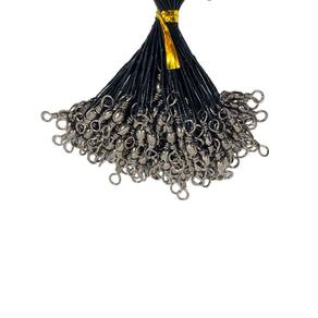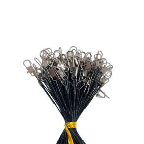 Chicotes em cabo de aço com snap reforçado e girador para ser utilizado como leader em peixes com dentição ou em locais com pedras e troncos evitando o rompimento, produto de primeira qualidade, extremamente resistente e disponíveis em varias libragens e tamanhos na cor black.