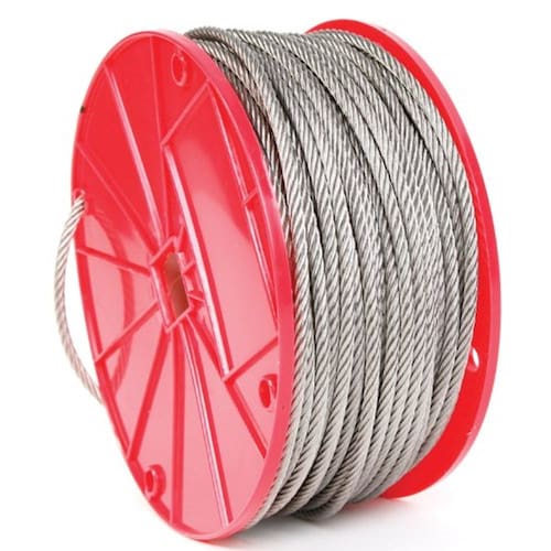 - O cabo é de aço inoxidável 7 x 19 e mede 1/4 x 38 m