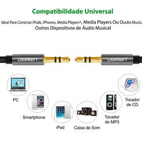 Ampla Compatibilidade com Dispositivos de Áudio: Com uma interface padrão de 3.5mm, este cabo é compatível com uma ampla gama de dispositivos, como smartphones, tablets, laptops, sistemas de som, alto-falantes portáteis e outros equipamentos de áudio. Esta versatilidade o torna uma solução ideal para diversas necessidades de conexão de áudio.