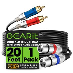 - Conectores duplos XLR fêmea de 3 pinos para RCA macho duplo, oferecendo conectividade versátil entre equipamentos de áudio profissionais e dispositivos de consumo.