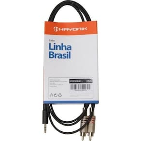 Cabo de Áudio Linha Brasil P2 Estéreo X 2 RCA 1,8m Preto Produzidos com matéria-prima de alto padrão, a linha de cabos da Hayonik foi desenvolvida para possibilitar uma melhor transmissão do sinal, evitando ruídos e interferências, proporcionando ao usuário excelente qualidade sonora. Produto fabricado no Brasil.