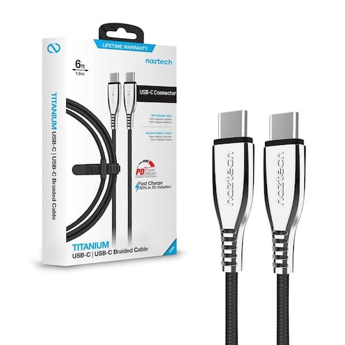 Experimente uma conveniência excepcional com nosso cabo de carregamento trançado Naztech Titanium USB-C para USB-C. O comprimento de 6 pés desses cabos oferece flexibilidade e portabilidade, perfeitos para carregar seus dispositivos em casa, no escritório ou em qualquer lugar. Com um design trançado durável com conectores reforçados, esse longo cabo de carregador resiste ao desgaste diário, garantindo uma conexão segura e sem emaranhados. Com o Power Delivery Assist, ele permite o carregamento ultrarrápido para dispositivos compatíveis, como MacBook, Galaxy, tablets e muito mais, fornecendo energia na velocidade da luz. Capaz de transferência de dados em alta velocidade, ele permite sincronizar arquivos de forma rápida e perfeita. Universalmente compatível com uma ampla variedade de dispositivos, esse cabo resistente ao calor garante um carregamento seguro, tornando-o um acessório essencial para todos os seus dispositivos USB-C. Ideal como cabo de carregamento longo para iPhone 15 e 16 Variant e dispositivos Android compatíveis com USB-C, ele combina durabilidade, transferência de dados em alta velocidade e desempenho confiável em um produto versátil.