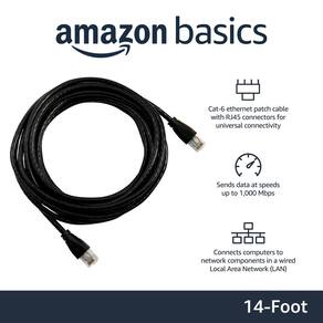 Cabo de conexão Ethernet Amazon Basics RJ45 Cat 6, velocidade de transferência de 1 Gpbs, conectores banhados a ouro, 14 pés para PC, TV, tablet, roteador, impressora, preto