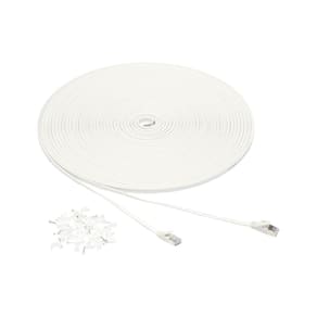 Cabo de conexão Ethernet Amazon Basics RJ45 Cat 7, plano, 600 MHz, sem parafusos, inclui 25 pregos para impressora, 100 pés, branco
