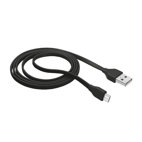 Cabo plano antiemaranhamento com revestimento em borracha macia, compatível com smartphones, tablets e computadores com ficha micro USB.Acabamento do material