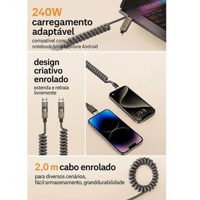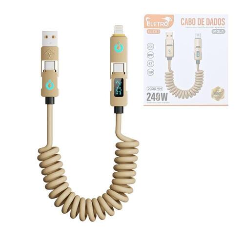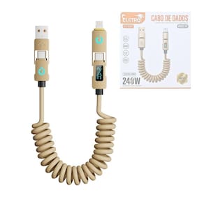 Código de barras: 7891102531379 Homologação Anatel: 112552012790 Cabo de Dados Mola 4 em 1 Conexão 2 Metros 240W Marca: Eletromex Conectividade Universal e Carregamento Ultrarrápido de 240W! O Cabo de Dados Mola 4 em 1 representa a vanguarda em conectividade e carregamento para seus dispositivos móveis. Projetado com versatilidade e alta performance em mente, este cabo universal oferece múltiplas opções de conexão em um único acessório compacto, ideal para quem busca praticidade, organização e carregamento ultrarrápido de até 240W. Especificações Técnicas: -Potência de Carregamento Ultra-Alta: Suporta até 240 Watts (W) de potência. Esta capacidade permite o carregamento rápido de notebooks, smartphones, tablets e outros dispositivos que exigem alta demanda energética, garantindo que seus aparelhos estejam prontos em tempo recorde. -Conectividade 4 em 1 Universal: Este cabo oferece uma solução completa para diversos padrões de porta, eliminando a necessidade de múltiplos cabos: USB-A para Tipo-C USB-A para Lightning Tipo-C para Tipo-C Tipo-C para Lightning -Essa versatilidade é alcançada através de adaptadores ou conectores duplos nas extremidades, permitindo a transição entre os principais tipos de portas USB e Lightning. -Design em Mola (Retrátil): O formato inovador em mola permite que o cabo se estenda até 2 metros de comprimento quando necessário e se retraia automaticamente para um tamanho compacto, evitando emaranhados e facilitando o transporte e a organização. -Construção Robusta e Durável: Fabricado com materiais de alta qualidade, o cabo é projetado para suportar o uso frequente e a tensão de esticar e retrair. Os conectores são reforçados para maior durabilidade e para garantir uma conexão estável. -Transferência de Dados de Alta Velocidade: Além do carregamento potente, o cabo também suporta transferência de dados em alta velocidade, permitindo a sincronização rápida de arquivos grandes entre seus dispositivos e computadores. -Ampla Compatibilidade: Ideal para uma gama completa de dispositivos, incluindo: Smartphones (Android e iOS) Tablets Notebooks Fones de ouvido sem fio Power banks e outros gadgets eletrônicos. -Comprimento: Até 2 Metros (retrátil) Disponível na cor: -Bege Medidas da embalagem: L: 12,0 x C: 4,5 x A: 13,5cm Peso do Produto: 125g