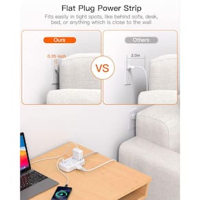 ?Cabo de extensão de 25 pés com plugue plano?Este cabo de extensão longo com 25 pés é longo o suficiente para torná-lo mais flexível. O cabo de extensão interno com USB com design de plugue plano pode caber facilmente em espaços apertados, como uma mesa ou mesa de cabeceira; o ângulo reto de 45 graus cria espaço suficiente para que este plugue plano USB não obstrua outros plugues, adequado para instalação atrás de sofá, guarda-roupa, estantes de livros e outros móveis. O cabo de alimentação trançado não é fácil de deformar, é durável e mais seguro.