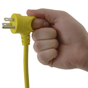 Interior. Calibre condutores: 16/3 sjtw. Comprimento do cabo: 9 pés. Cor: amarelo. Tipo de tomada: i-ring plugue. Volts: 125 volts. Máxima amperagem: 13 Amperes. Material de isolamento: de borracha. Número de condutores: 3. UL. Tipo de fio: redondo. Configuração: NEMA 5 – 15P esquerda ângulo de NEMA 5 – 15R. Luz LED indicador de energia.