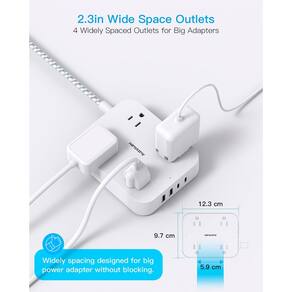 - ?Tira de tomada plana?O plugue plano ultrafino de 0,9 cm e o design de ângulo reto de 45° tornam este cabo de extensão incrivelmente discreto. Cabe facilmente perto da parede e pode ser colocado atrás de móveis, camas ou mesinhas de cabeceira sem obstruir a saída inferior. Este design que economiza espaço ajuda a manter sua configuração limpa e organizada enquanto aproveita ao máximo suas tomadas disponíveis