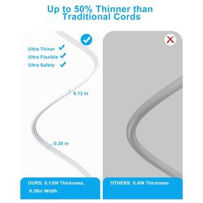 Cabo de extensão plano de 3 metros atrás de móveis - cabo ultrafino sob o tapete, tapete, porta, cabo de extensão longo com 3 saídas USB 3, cabo de extensão de baixo perfil para viagens de escritório interno, branco - ?Cabo ultrafino de 3 metros?O cabo plano de 0,3 cm pode ser facilmente executado ao longo da parede, chão ou sob o tapete, porta sem causar protuberância, protegendo sua família de tropeçar, facilitando varrer e esfregar. O cabo de extensão de 3 metros oferece flexibilidade e permite que você alcance facilmente tomadas distantes, tornando-o ideal para uso em casa, escritório, escola e dormitório. - ?Filtro de energia 6 em 1?O cabo de extensão plano de 3 metros pode transformar 1 tomada americana em 3 tomadas CA e 3 portas USB (1 USB-C), carrega 6 dispositivos simultaneamente sem bloquear, mantendo sua área de trabalho organizada; - ?Cabo de extensão de plugue plano? - O plugue de 1,1 cm que é muito mais fino do que os plugues tradicionais, o torna próximo à parede e cabe atrás da cama, sofá, móveis. O design do plugue plano de ângulo reto de 45° evita o bloqueio do plugue inferior. - ?Carregamento USB inteligente?-3 portas de carregamento USB (1 USB-C) integradas com tecnologia de carregamento inteligente que permite que cada porta detecte e forneça saída ideal de até 2,4 A (total de 5 V/3,1 A/15,5 W). Não precisa de uma variedade de carregadores, que são convenientes e eficientes, também economizando espaço. - ?Proteção contra sobretensão 1080J?Equipado com proteção contra sobrecarga, proteção contra curto-circuito, proteção contra sobrecorrente, este cabo de extensão com várias tomadas pode proteger seus eletrônicos caros, proporcionando um ambiente de carregamento seguro e confiável.