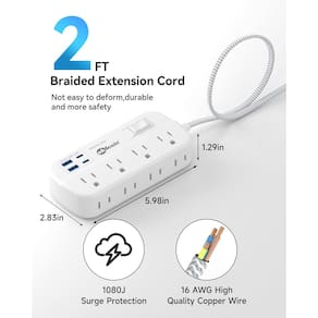 - Proteção contra sobrecarga e sobretensão: Este filtro de linha tem proteção contra sobretensão (1080J), proteção contra sobrecarga, proteção contra curto-circuito e proteção contra sobrecorrente. Com um disjuntor integrado, o interruptor liga/desliga desliga automaticamente enquanto seus dispositivos protegem seus eletrônicos caros, oferecendo a você um ambiente de carregamento seguro e confiável