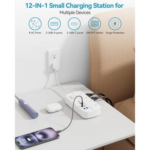 - Régua de alimentação de 8 tomadas com 4 USB: esta régua plana de 60 cm pode transformar 1 soquete em 8 tomadas CA e 4 portas USB (2 USB C), possui uma faixa de tensão de 125 V e um cabo de extensão resistente de 13 A, que fornece energia e carregamento para até 12 dispositivos a partir de uma única tomada de parede. Você pode usá-lo em qualquer lugar interno, como uma casa, escritório ou dormitório