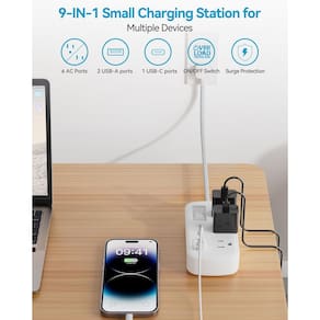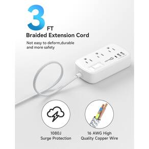 Cabo de extensão plano de 9,5 m - filtro de linha USB com plugue plano protetor contra surtos com 6 tomadas, 3 portas de carregamento USB (5 V/3,4 A, 17 W), divisor de tomada de parede para casa, quarto, hotel, escritório, acessórios de mesa - Tira de alimentação curta flexível de 91,4 cm: esta pequena régua de tomada tem um cabo ultracurto de 91 cm e design de 2 lados, permitindo o posicionamento flexível sem obstruir os soquetes adjacentes. Mantenha sua mesa limpa e organizada com o mínimo de confusão de cabos. - 6 tomadas com 3 USB: este filtro de linha plano de 60 cm pode transformar 1 soquete em 6 tomadas CA e 3 portas USB (1 USB C), possui uma faixa de tensão de 125 V e um cabo de extensão resistente de 13 A, que fornece energia e carregamento para até 9 dispositivos a partir de uma única tomada de parede. Você pode usá-lo em qualquer lugar interno, como uma casa, escritório ou dormitório - Divisor de tomada USB C: a saída USB total é de 5V/3,4A/17 W. A porta USB C possui 3,1 A, duas portas USB A possuem 2,4 A, as portas USB podem detectar automaticamente seus dispositivos e fornecer eficiência de carregamento mais rápida. Ideal para o seu iPhone, iPad, fones de ouvido, tablet, etc - Proteção contra sobrecarga e sobretensão: Este filtro de linha tem proteção contra sobretensão (1080J), proteção contra sobrecarga, proteção contra curto-circuito e proteção contra sobrecorrente. Com um disjuntor integrado, o interruptor liga/desliga desliga automaticamente enquanto seus dispositivos protegem seus eletrônicos caros, oferecendo a você um ambiente de carregamento seguro e confiável - Montagem na parede e plugue plano ultrafino de 0,4 pol: 2 furos de montagem na parte traseira podem facilmente garantir o protetor contra sobretensão em paredes, rodapés ou móveis. O plugue plano possui um perfil baixo que se encaixa facilmente em espaços apertados e fica escondido atrás de móveis. Montagem na parede e plugue plano ultrafino de 0,4 pol: 2 furos de montagem na parte traseira podem facilmente garantir o protetor contra sobretensão em paredes, rodapés ou móveis. O plugue plano possui um perfil baixo que se encaixa facilmente em espaços apertados e fica escondido atrás de móveis.