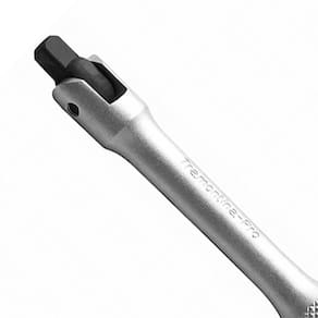 Forjado em aço cromo vanádio e temperado. Acabamento cromado. Quadrado de tração fosfatizado. Din 3122. Suporte plástico. Realizar trabalhos em planos inclinados onde seria difícil utilizar uma chave comum ou cabo T. As ferramentas são produzidas e testadas conforme normas específicas.