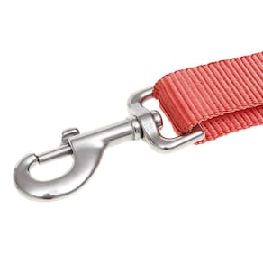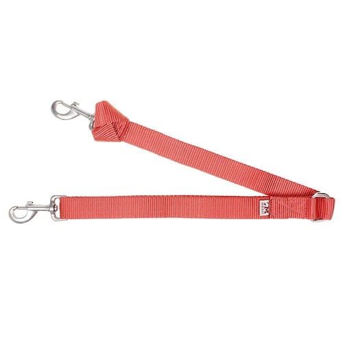 Cabo de gamarra M Reis fabricado em fita de nylon cor Vermelha com 2,5cm de largura e costuras reforçadas, possui 2 mosquetões reforçados e ferragens de metal com banho cromo para regulagem de comprimento.