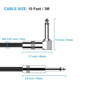 Conectores de metal resistentes de 1/4" reto para ângulo reto, 3 m. - [Baixo ruído e alta fidelidade] O cabo de guitarra New bee com condutores centrais de cobre livre de oxigênio de 22AWG oferece transferência de sinal aprimorada, o material de isolamento de PVC e o escudo duplo de cobre trançado de alta densidade fornecem rejeição de ruído para operação silenciosa - [Ideal para escolha] Conectores metálicos New bee 1/4 reto e ângulo reto, garantem uma conexão segura em qualquer instrumento, pedal ou conector de amplificador. Suporte de guitarra em formato de L ótimo para palco. - [Ampla compatibilidade] Adequado para mixer, amplificador de potência, microfone, efetor, decodificador, equalizador, órgão eleitorônico, guitarra elétrica, baixo elétrico e outros equipamentos eletrônicos. Amplamente utilizado na instalação de casa inteligente, alto-falante de karaokê, áudio de palco profissional, etc. - [Fácil de desmontar] Tornando os reparos acidentais rápidos e fáceis! Cabo muito bom e flexível! - [Não hesite em pedir] 24 horas de atendimento ao cliente e equipe de tecnologia profissional estão prontos.