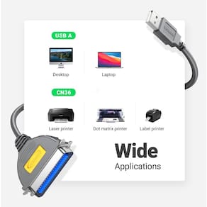 O cabo de impressora UGREEN USB para IEEE1284 CN36 é ideal para conectar computadores desktop ou notebooks equos com USB a uma impressora paralela, injetor, laser e scanner, etc. com conector centrônico 36F. É compatível com USB 1.1 e 2.0, plug & play, sem necessidade de instalação de driver.