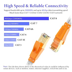 Desempenho superior Composto por 100 de cobre livre de conector no interior, 4 pares 100 30WAG puro e par trançado protegido STP de fios de cobre com 50 pinos de contato banhados a ouro em cada RJ45 protegido, o cabo Ethernet Cat8 oferece a proteção contra interferência EMI, RFI e fidelidade confiança para maior transmissão de dados de dados.