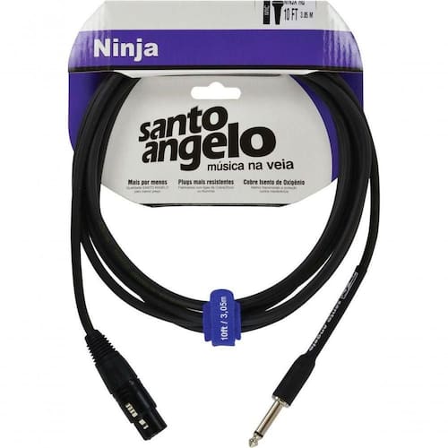 Cabo De Microfone Ninja Hg 0,20 Mm Conector P10/xlr Femea 10ft 3,05 Metros Preto Cabo de microfone de alta impedância. Fabricado em liga de Cobre OFHC (Oxigen Free High Conductivity). Plugs P10 de Latão CLA (Liga de Cobre e Zinco) usinados. Conector XLR injetado em Zamac (Liga de Alumínio). Conectores blindados com thermocontratil. PVC emborrachado. Cor: Preto. Comprimento: 3,05 m. Bitola de 2 x 0,20mm/24AWG (SC20). Montado com conector XLR Fêmea injetado em Zamac (Liga de alumínio) e conector P10 usinado em latão (CLA) niquelado. Ean: 7899028808711