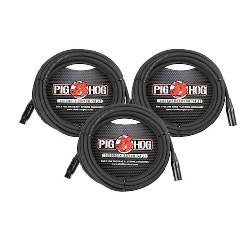 - 3 cabos de microfone XLR de alto desempenho Pig Hog de 8 mm, 25 pés - PHM25