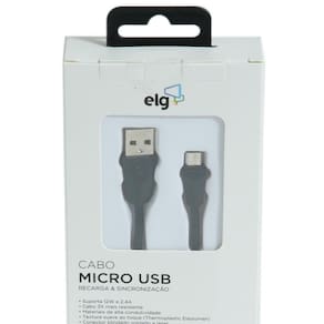 Cabo de Recarga/Sincronização 1m Micro USB ELG M510 Preto USB para recarga e sincronização de forma eficiente. Este mesmo cabo pode ser conectado ao Carregador Veicular e de Parede Universal ELG para recarregar de froma práticas e rápidas.