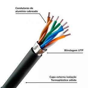 - Divisão: O cabo é dividido em 4 pares trançados, o que proporciona maior desempenho e minimiza interferências, graças à sua blindagem.
