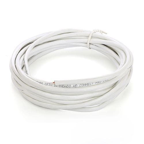 Cabo De Rede Blindado Cat5e Branco - 20 Metros Produzido para transmissão de dados em rede, o Cabo de Rede Blindado CAT5, 24AWG da ChipSCE conta com 4 pares traçados, blindagem, revestimento em PVC anti chamas, e bitola de 24 AWG, oferecendo alta performance no seu projeto.