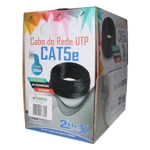 O cabo de rede 4 pares 2 flex é fabricado com 100% de cobre em todos os seu condutores, não sendo utilizado alumínio na sua composição. Essa é a sua maior qualidade e diferencial dentre os seus concorrentes. Modelo de 4 pares em caixa com 305m cada. Atinge uma excelência em transporte de dados, voz, vídeo e etc. Desenvolvido de acordo com todas as normas de qualidade.Normas de qualidade:Ansi tia/eia-568-b.2, ansi tia/eia-568-b.2-11 - 2005, abnt nbr - 14703:2005, abnt nbr 9141:1998, abnt nbr 9148:1998 e abnt nbr 14705:2006.Características técnicasTipo de cabo: utp;Material da capa externa: pvc não reciclado; Número de pares: 4;Categoria: cat. 5e;Metragem disponível: 305m;Material de isolamento do condutor: hdp-e não reciclado;Condutor: ø 0.50 mm de cobre ;Medidas da embalagem: 340x200x345mm;