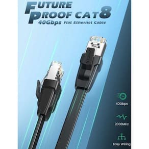 Cabo De Rede Cat8 Rj45 Ugreen FLAT 3 metros BlindadoModelo FLAT Marca UGREEN Cabo de Alto DesempenhoSuporta largura de banda de até 2000 MHz, oferece velocidade máxima de rede de 40 Gbps para você navegar na Internet, transmitir vídeos, música e outros dados sem os aborrecimentos de uma rede lenta.Excelente efeito de proteção. Transmissão Rápida e Estável.Em comparação com o invólucro de plástico usual do cabo UTP, os cabos Ethernet de alta velocidade com revestimento de PVC e várias folhas de alumínio fornecem blindagem forte. Os conectores RJ45 folheados a ouro protegem o cabo de interferências eletromagnéticas externas.Instalação de um segundoPlug-&-play: Pronto para uso, uma vez que cada extremidade é conectada a uma respectiva porta em um dispositivo compatívelMarca: UGREEN - Qualidade Garantida Nome: Cat 8 U/FTP Ethernet Cable Flat DesignModelo: 10982Conector: RJ45 8P8CConectores Blindados e Banhados a Ouro 24KConectores Protegidos contra Interferências EMI / RFICondutor : 100% Cobre - Livre de OxidaçãoTaxa Transmissão: 40GbpsLargura da Band: 1Mhz-2000MhzMaterial do revestimento : PVC + aluminio internoAWG: 30AWG Flat CableDiametro: 2,1mm x 6,2mmTamanho: 3 metrosCor: PretoPacote lacrado de fábrica Marca: Ugre