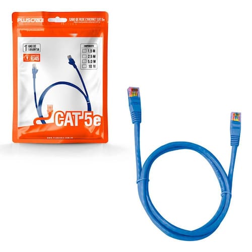 Cabo ethernet cat 5e, conector tipo rj45 Tecnologia de transferência de dados e confiabilidade em suas conexões Utilização: conexões em rede / cftv Categoria de aplicação - transferência de dados Comprimento nominal: 1,5 metros Material de revestimento externo - pvc Isolante hdpe Frequência: máxima 250 mhz Acabamento dos conectores - conectores com travas Bitola do fio: 26 awg Taxa de transferência de dados - gigabit Temperatura de operação: -20 c a 75 c Filtro toroidal - não Cor predominante - azul