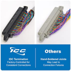 - CONECTADO COM CONECTORES DE DESLOCAMENTO DE ISOLAMENTOS: Usa IDC para terminar 25 pares de fios em 25 pares de pinos polarizados, garantindo conexões mecânicas seguras e estáveis. Compatível com 66 blocos pré-conectados ICC (IC066SFT25, IC066DFT50) e uma variedade de painéis de patch de telecomunicações, incluindo ICMPP024T2 e ICMPP24TF2.