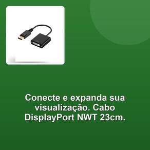 Fabricado com materiais de alta qualidade, o Cabo DisplayPort NWT garante durabilidade e desempenho confiável. A conexão DisplayPort macho para DVI fêmea foi cuidadosamente projetada para oferecer uma transmissão de sinal estável e eficiente, permitindo que você aproveite imagens nítidas e vibrantes. Além disso, sua cor preta adiciona um toque discreto e elegante à sua configuração, combinando facilmente com outros equipamentos.