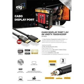 Cabo Displayport 1.4v 8K UHDTV 2 metros DP1420 ELG - Ref: DP1420 O máximo em resolução que um cabo pode oferecer agora ao seu alcance. Tecnologia 8K com resolução de 7680 x 4320px.