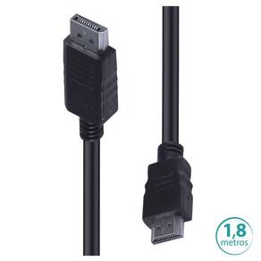 Descrição A linha de cabos, adaptadores e conversores Vinik, são as melhores opções no mercado. Sem perder a qualidade na sua necessidade de adaptar ou converter as entradas de áudio e vídeos de seus aparelhos. O Cabo DisplayPort para HDMI é ideal para conexões e conversões de uma saída de áudio e vídeo Displayport para dispositivos reprodutores de imagem com conexão HDMI, como televisores, monitores e projetores. A conexão é feita no sentido de DisplayPort para HDMI Dados técnicos: 1 x HDMI / 1 x Displayport Versão HDMI 1.4 Versão Displayport 1.2 Resolução máxima: 4K/30 Hz. Tamanho: 1,8 Metros