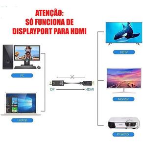 Este cabo não funciona de H.D.M.I. Para Displayport, exemplo: placa de vídeo é H.D.M.I. E o seu monitor é displayport, não funciona dessa forma. Marca: Não Informado