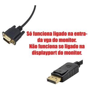 Especificações: - Tamanho do cabo: 1,5 m - Compatível: Todos os equipamento com saída DisplayPort. - Conecte seu computador ou outro aparelho com saída DisplayPort em um projetor ou monitor com porta VGA - Cor: Preto