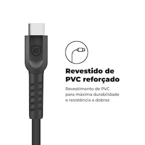 Cabo de 1,2m revestido em PVC reforçado, compatível com Qualcomm 3.0, acompanha presilha Smart Arrange.Tipo