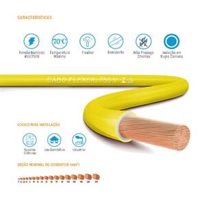 Tensão suportada: 450/750V, garantindo o uso em diversos tipos de instalações elétricas de baixa e média tensão.