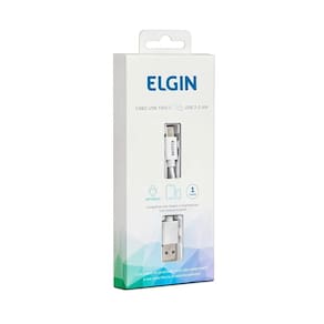 - Marca: Elgin; - Composição: Materiais plásticos isolantes, materiais metálicos, conmndutores e componentes eletrônicos; - Para transferência de dados de até 480Mbps; - 1 metro de cabo; - Cor: Branca; - Apresenta um novo padrão de conexão para mais flexibilidade, velocidade de transmissão de dados e recarga elétrica.